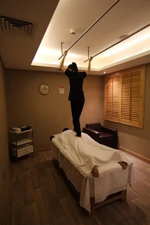 The firm pressure from back walking targets deep muscles and fascia, boosting circulation, releasing toxins, and promoting healing. The therapist's use of body weight helps effectively release tension in the back, shoulders, legs, and arms.